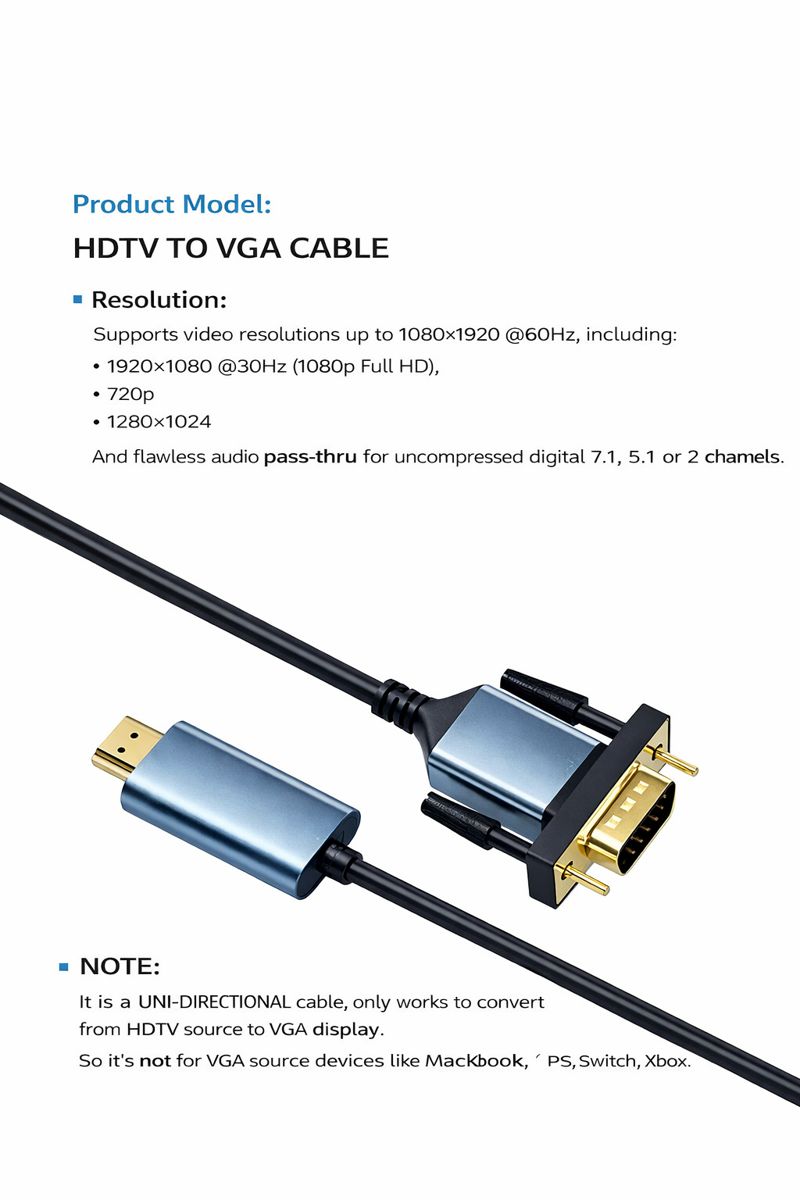 ⚠️ Uni-Directional Cable – Works only from HDMI source ➜ VGA display