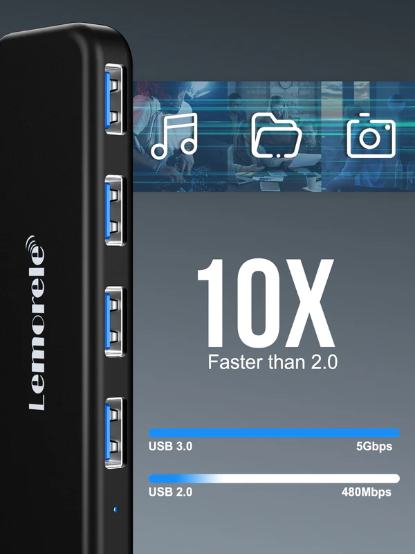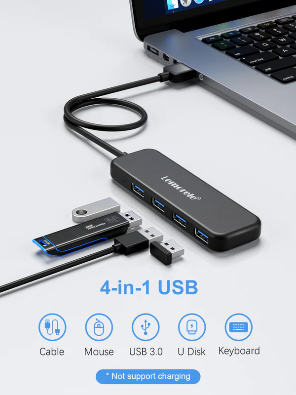 If you’re looking for a high-speed USB hub with a durable metal design and a long cable for maximum convenience, the Lemorele (TC55) 4-in-1 USB 3.0 Metal Hub is the perfect addition to your setup.