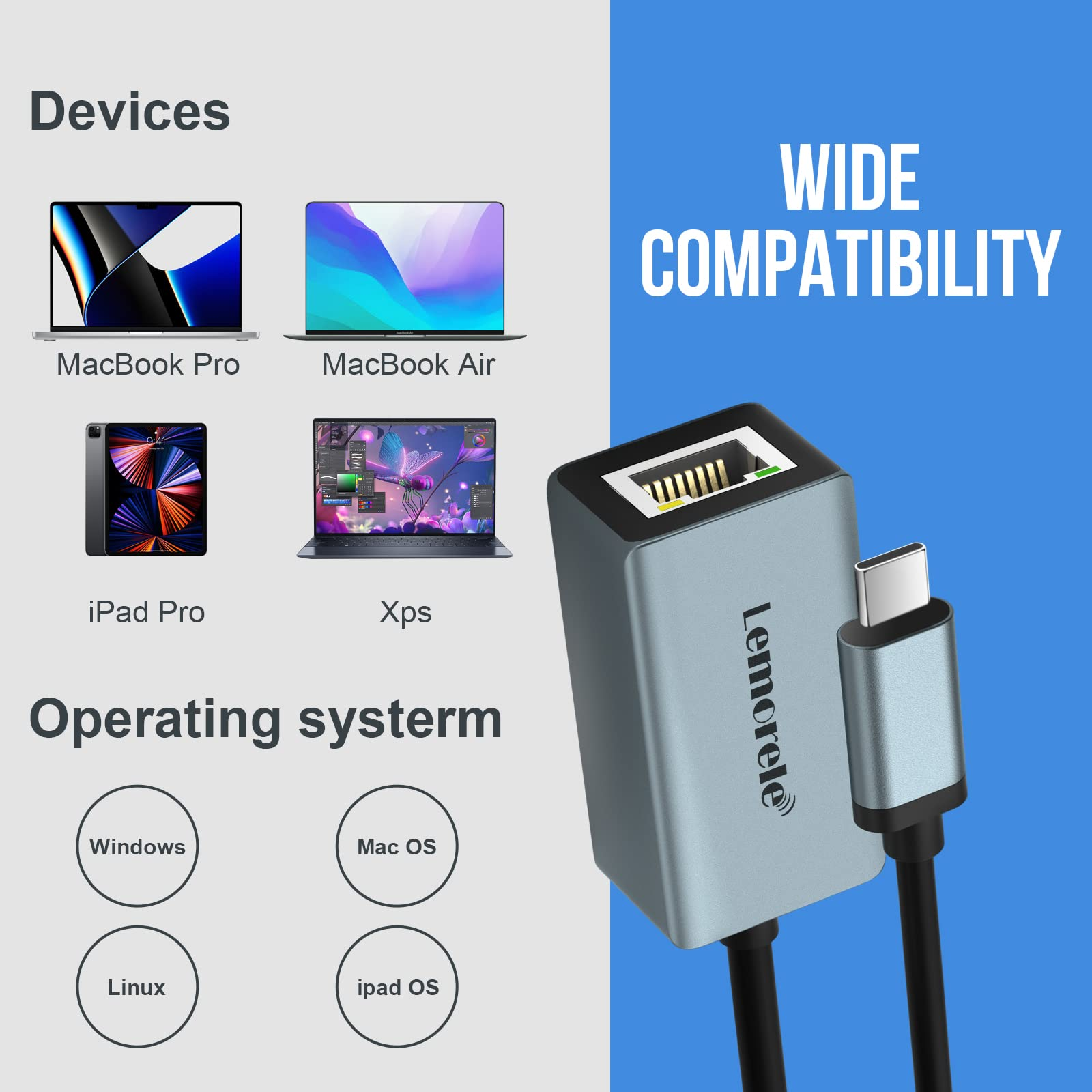 With Gigabit Ethernet support, this adapter cable provides smooth and stable internet connectivity, helping you enjoy faster downloads, stable video calls, and uninterrupted streaming. Whether you’re working in an office environment, attending online meetings, playing online games, or transferring large files, the Lemorele (TC71) ensures better performance and lower latency compared to wireless connections.