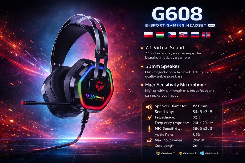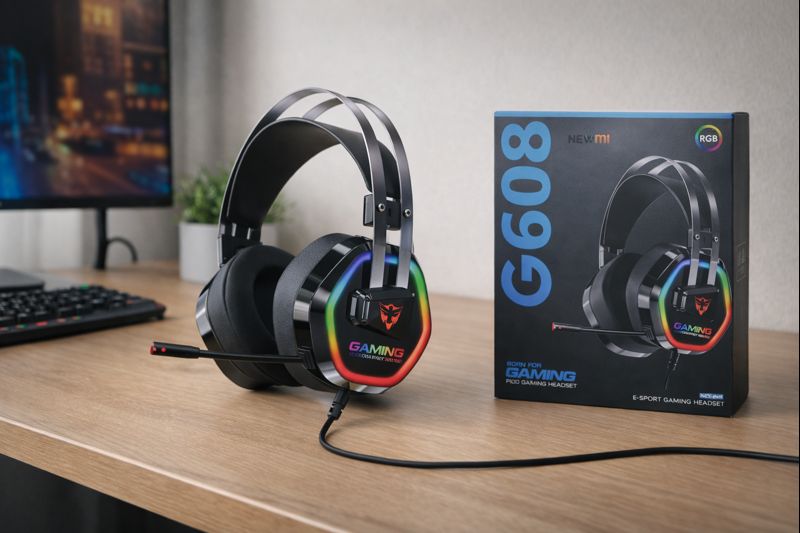 The NEWMI (G608) E-SPORT Gaming Headset Backlight is a premium gaming headset designed to deliver immersive sound performance, precise communication, and lasting comfort for gamers. With its 7.1 virtual surround sound, the G608 enhances audio depth and positioning, helping you react faster and stay competitive in every match.