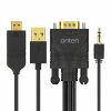 Unlike standard passive cables, the OTN-5152 features active VGA to HDMI conversion, ensuring stable video transmission and improved compatibility. The included 3.5mm audio connector enables audio to be transmitted alongside video through HDMI, delivering synchronized sound and visuals for presentations, videos, and multimedia use.