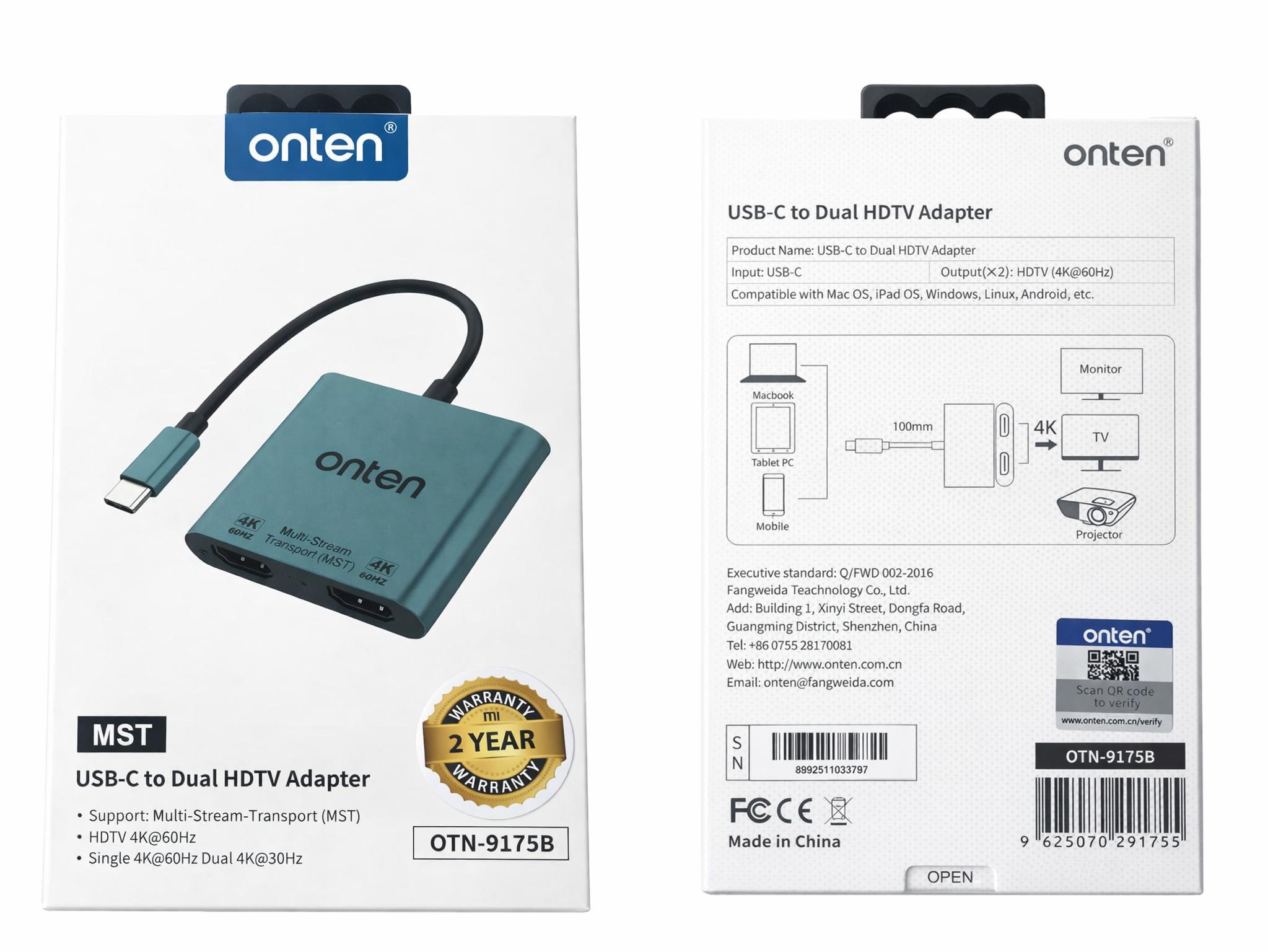 With wide compatibility across Mac OS, iPad OS, Windows, Linux, and Android, this adapter works effortlessly with laptops, tablets, and smartphones that support USB-C video output. Whether you’re connecting to monitors, TVs, or projectors, the ONTEN OTN-9175B delivers consistent and high-quality performance.