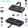 Equipped with 4K HDMI output, the hub supports high-resolution video for presentations, entertainment, and professional workflows. The inclusion of VGA output ensures compatibility with legacy monitors and projectors, making it ideal for office, classroom, and conference environments. With audio output support, users can easily connect headphones or external speakers for a complete multimedia setup.