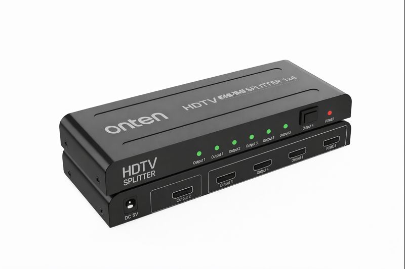 The ONTEN OTN-CS144S HDMI Splitter is a reliable solution for sharing a single HDMI source across multiple displays. Designed with one HDMI input and four HDMI outputs, it allows you to display the same content simultaneously on up to four TVs, monitors, or projectors, making it ideal for both professional and personal environments.