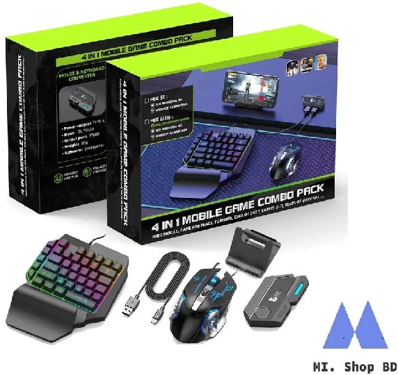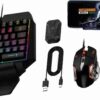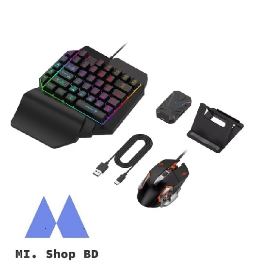 4 IN 1: Mobile game combo pack includes a keyboard and mouse converter, a gaming mouse, a one handed keyboard, and an independent adjustable phone stand with multi position angle adjustment.