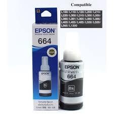 Epson 664 Black ink bottle refill used in Epson inkjet printers. This ink bottle is very cost efficient as it has a high page yield. This ensures a huge low cost printing for a long time. This Ink Bottle supports or compatible Printer. The supported printers are Epson L100, L110, L120, L130, L200, L210, L220, L300, L310, L350, L355, L360, L361, L365, L380, L382, L385, L405, L455, L485, L550, L555, L565, L605, L655, L1300 Printer.