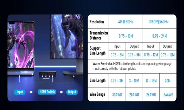 2. This video switcher has powerful video processing capabilities and can support video output up to 4K resolution (3840×2160 pixels) and a refresh rate of 30Hz. Whether you’re watching high-definition movies, playing games, or doing professional image processing, this switch ensures high fidelity of image quality and clarity of detail. It supports the latest video standards, making your visual experience more realistic and stunning.