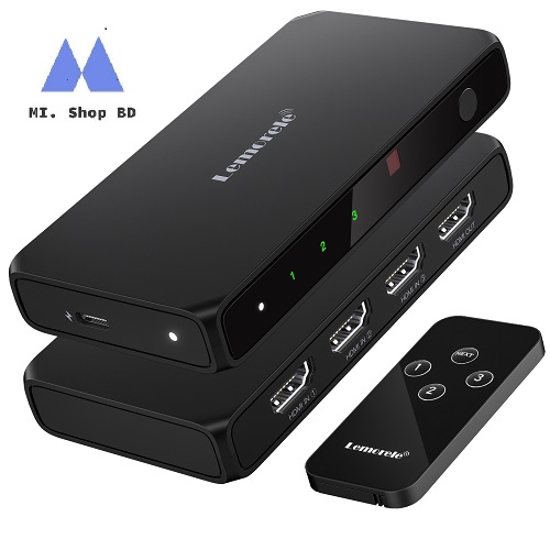 3. The switcher also has a smart switching function that automatically detects and switches to the most recently active input source, simplifying the operation process. In addition, the switcher also supports the high-bandwidth HDMI 2.0 standard to ensure stable and high-definition quality of the transmitted video and audio signals. 4. Switching can be done using the provided remote control or the buttons on the device to conveniently select the desired input source. The switcher may also have other functions, such as remote control, fast switching and LED indicators, to provide more operational convenience and visual information.