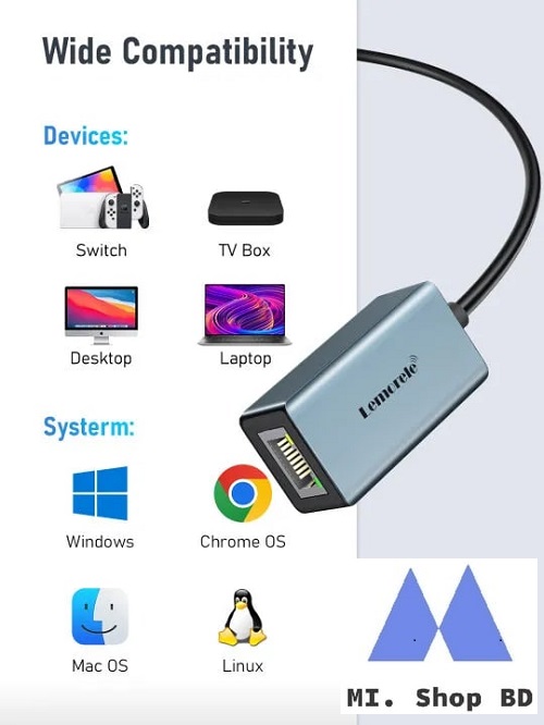 ✅【Plug & Play und Portable】Lemorele USB 3.0 Auf Ethernet Adapter is specially designed for plug-and-play connection between USB-A Port devices and wired networks. This USB Auf RJ45 Gigabit Ethernet adapter perfectly matches your device’s USB-A ports, and better signal transmission protection. passt in die Tasche, Laptop-Tasche, Handtasche, etc, Er ist leicht und tragbar und nimmt keinen Platz weg. Größe: 47 * 25 * 18mm.✅ Lemorele USB Ethernet Adapter provides stable connection speeds of up to 1Gbit/s (backwards compatible with 100Mbps/10Mbp networks). Compared to Wi-Fi, this USB to LAN Gigabit Ethernet Adapter can get a much faster, more reliable network speed. As long as your network cable is gigabit capable, whether you are playing or watching TV, no need to worry about delays.✅ Friendly Design ️⃣ Aluminum alloy housing: USB Ethernet adapter aluminum housing, fall-proof, with good heat dissipation and better information transmission.2 ️⃣ Nylon rope material Cable: lan adapter cable wrapped with nylon rope, high durability, can be folded repeatedly 5000 times.3 ️⃣ Long enough cable: 40cm cable, enough length to extend on the table.A nice companion at home, in the office or on vacation.✅ Lemorele USB LAN Adapter is compatible with all systems and devices with network input USB A ports, such as Switch/Xbox/PS4/Chromecast with Google TV,Mac OS/Windows/Chrome OS/Android/iOS/Linux and compatible with MacBook Pro/Air M1,iMac,iPad Pro/Air M1,Dell XPS,Huawei,HP,Lenovo and Windows 8.1/8/7/Vista/XP, Mac OSX 10.6/10.7/10.8/10.9/10.10/10.11/10.12, Linux Kernel 3.x/2.6 and Chrome OS.