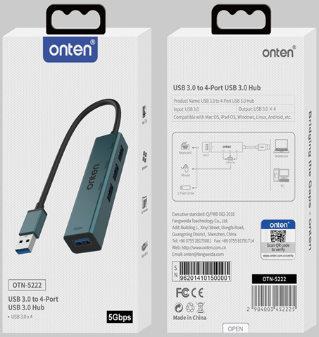 Powered by USB 3.0 technology, the OTN-5222 supports data transfer speeds of up to 5Gbps, making it ideal for fast file transfers, external hard drives, flash drives, printers, keyboards, and other USB peripherals. The hub allows multiple devices to operate simultaneously without compromising performance.