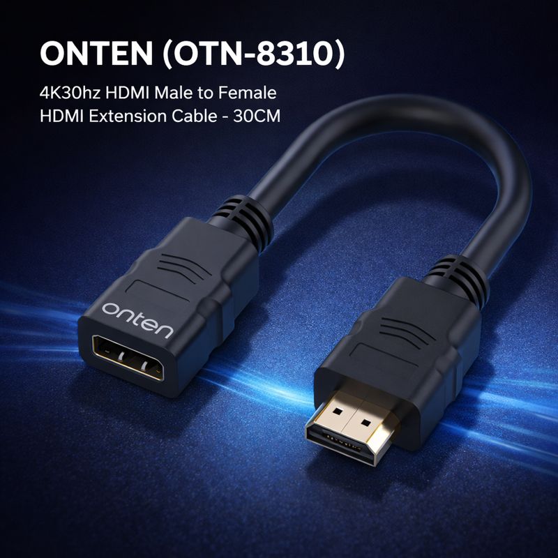 The ONTEN (OTN-8310) HDMI Male to Female Extension Cable – 30CM is a practical solution for extending existing HDMI cables or protecting HDMI ports from frequent plugging and unplugging. Supporting HDMI 4K resolution at 30Hz, it delivers stable and high-quality audio-video output.
