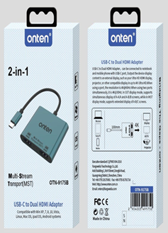 The ONTEN (OTN-9175B) Type-C to Dual HDMI Converter 4K60Hz is the ideal solution for users who need more screen space and better productivity. It allows you to connect two HDMI monitors or TVs to a single USB-C laptop, enabling screen mirroring or extended display modes for multitasking, professional workflows, and presentations.