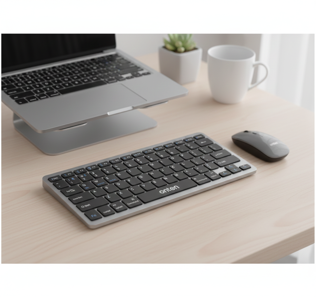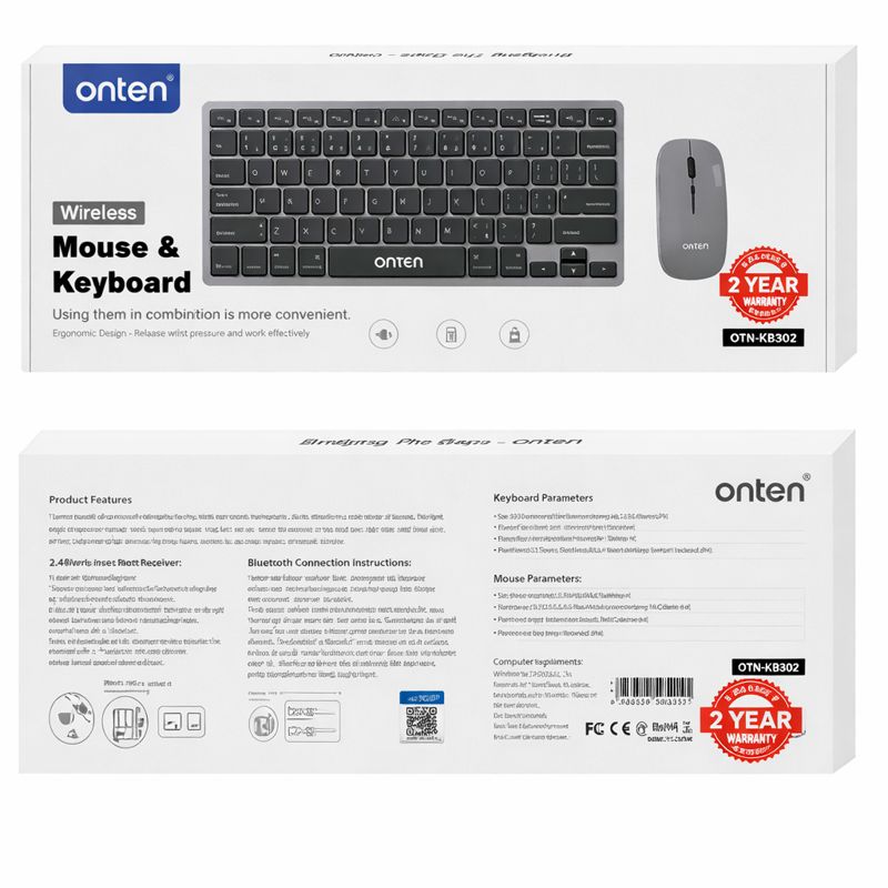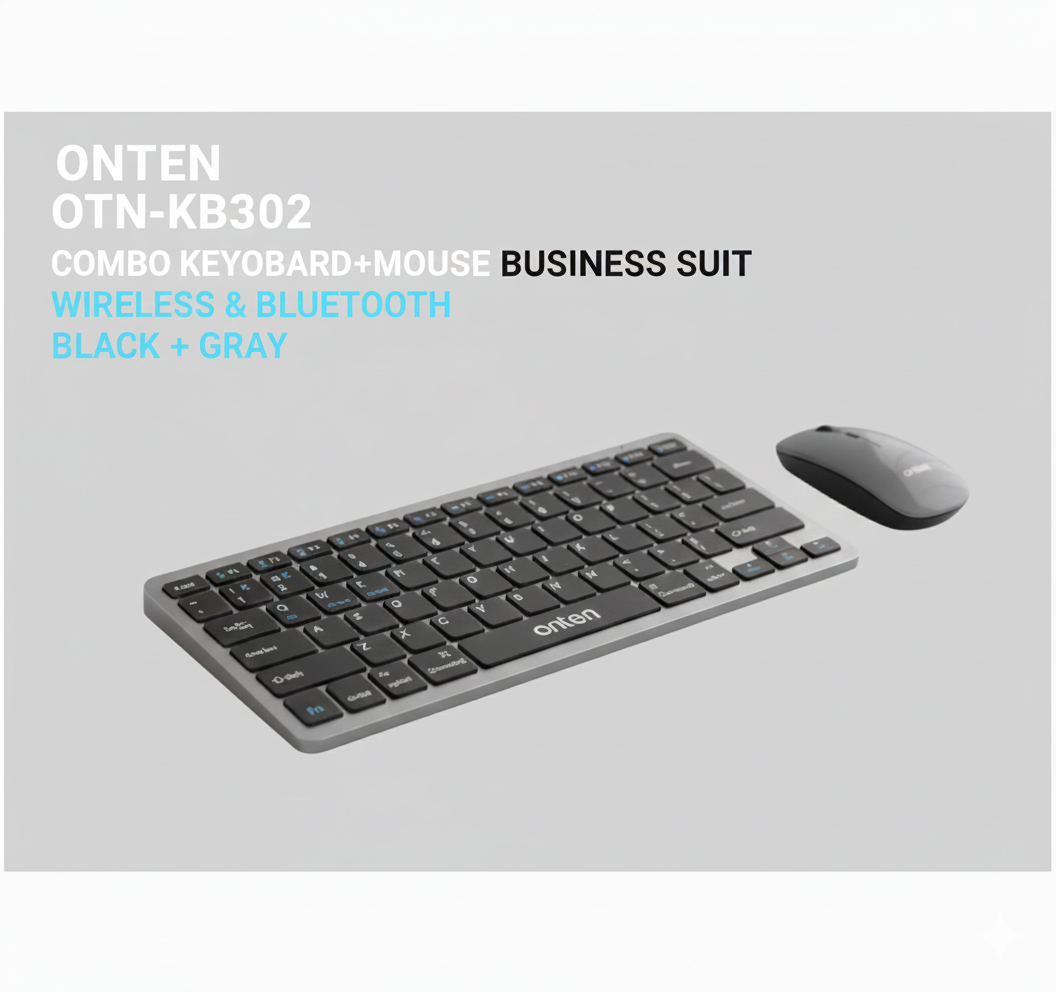 The ONTEN (OTN-KB302) Wireless & Bluetooth Keyboard + Mouse Combo is built for professionals who need reliability, flexibility, and style. With dual connectivity options, you can connect via wireless USB receiver or Bluetooth, making it ideal for laptops, desktops, tablets, and other compatible devices.
